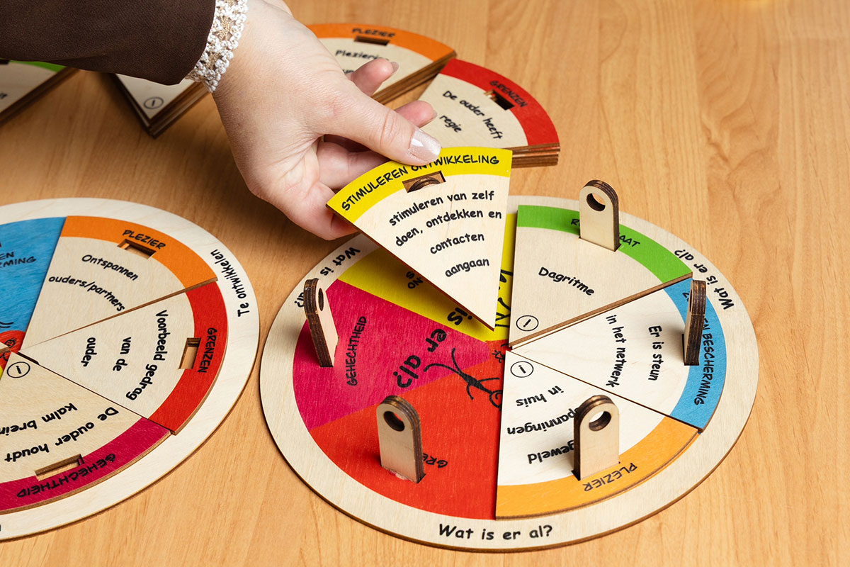 We beschouwen lastige situaties als een uitdaging. Ouders komen zelf tot het bedenken van oplossingen, mede doordat we hen bevragen op verschillende gebieden. We krijgen informatie van ouders als het gaat over hun netwerk, middelen, steunbronnen en hun eigen gezin van herkomst. We bespreken lastige situaties voor en na, zodat we hier samen wijzer van worden en oefenen samen nieuw gedrag. De gewenste veranderingen brengen we duidelijk in beeld. We werken met beeldend materiaal, zoals spellen, korte filmpjes, schema’s en uitgewerkte gedragsoefeningen.